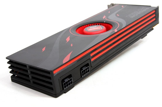 The Radeon HD 6990 comes armed with an astonishing 3072 shader processors, thus 48 SIMD based shader clusters, split up in a twofold engine per GPU. The domain and shader clock is locked in at 830 or 880 MHz. The card comes paired with 4 GB of memory clocked at (effective) 5000 MHz (2GB per GPU). The TDP of this product is 350W in default mode, and in unlocked mode the card can consume 415W with a hefty game. There's room left for overclocking in the unlocked design though, you may take the card up-to roughly 450W.